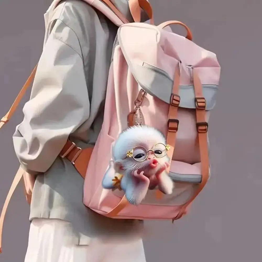 2D قرد على شكل سيارة قلادة معلقة حلية مع سلسلة واقعية الحيوان مرآة الرؤية الخلفية ديكور معلق اكسسوارات السيارات الداخلية